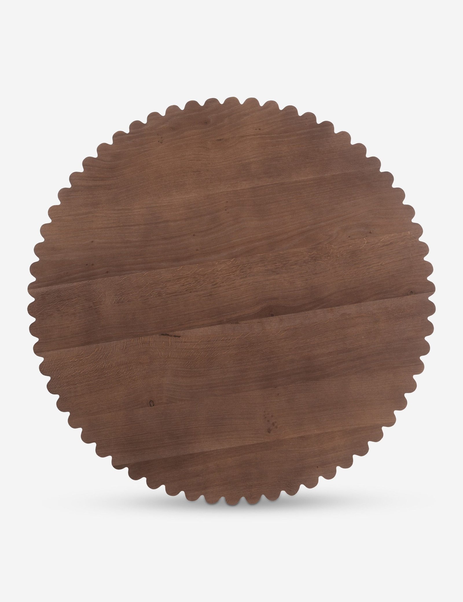 The soothing rhythm of a scalloped apron brings chic appeal to this bistro table. Its round silhouette creates an intimate table to gather around in your kitchen or breakfast nook. A brass-finished pedestal completes the look with a timeless touch.